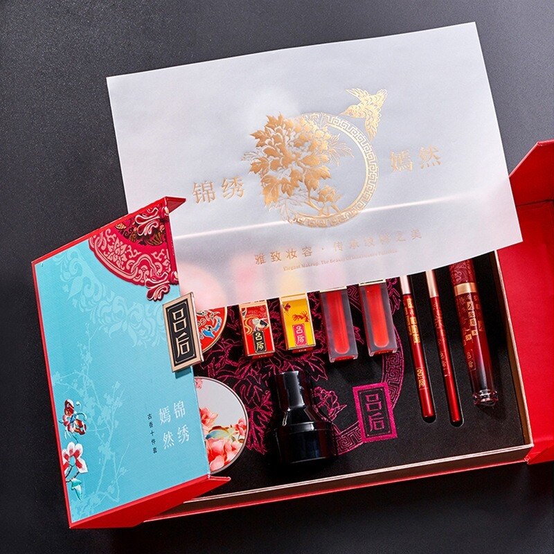 Chinese Style Splendid Yanran Cosmetic Makeup Set Box Mushroom Head Air Cushion Bb Cream Concealer Lipstick Ten-piece Gift Box
