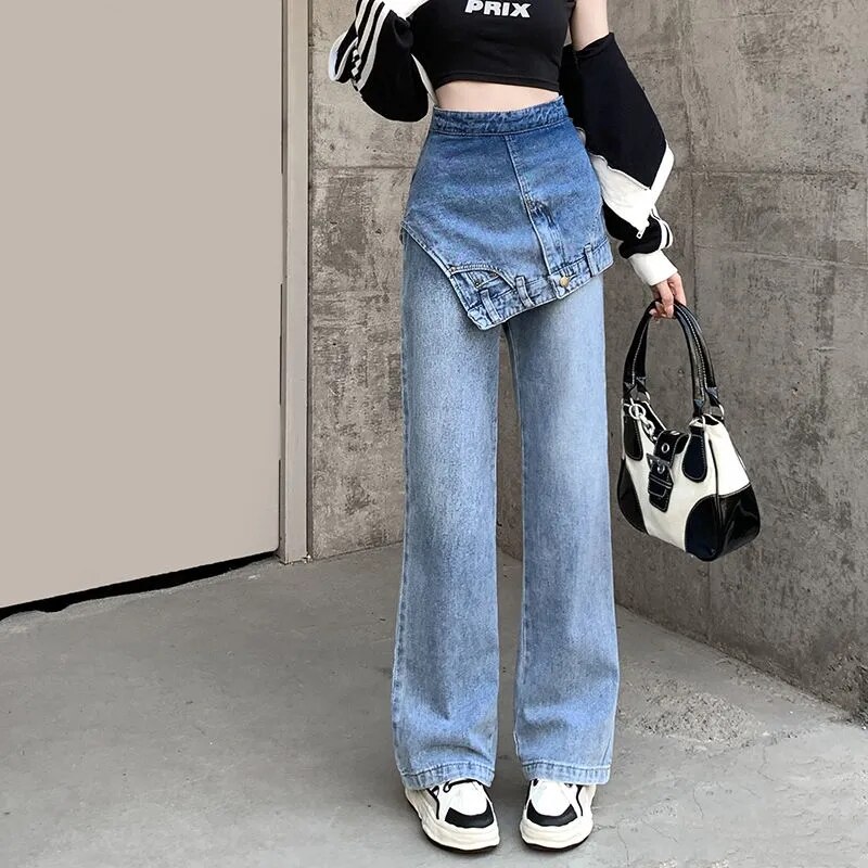 Faux Two Piece Flared Jeans Women's Y2k Winter 2023 Design Niche High Waist Slim Wide Leg Pants Trendydickies Pants청바지джинсы