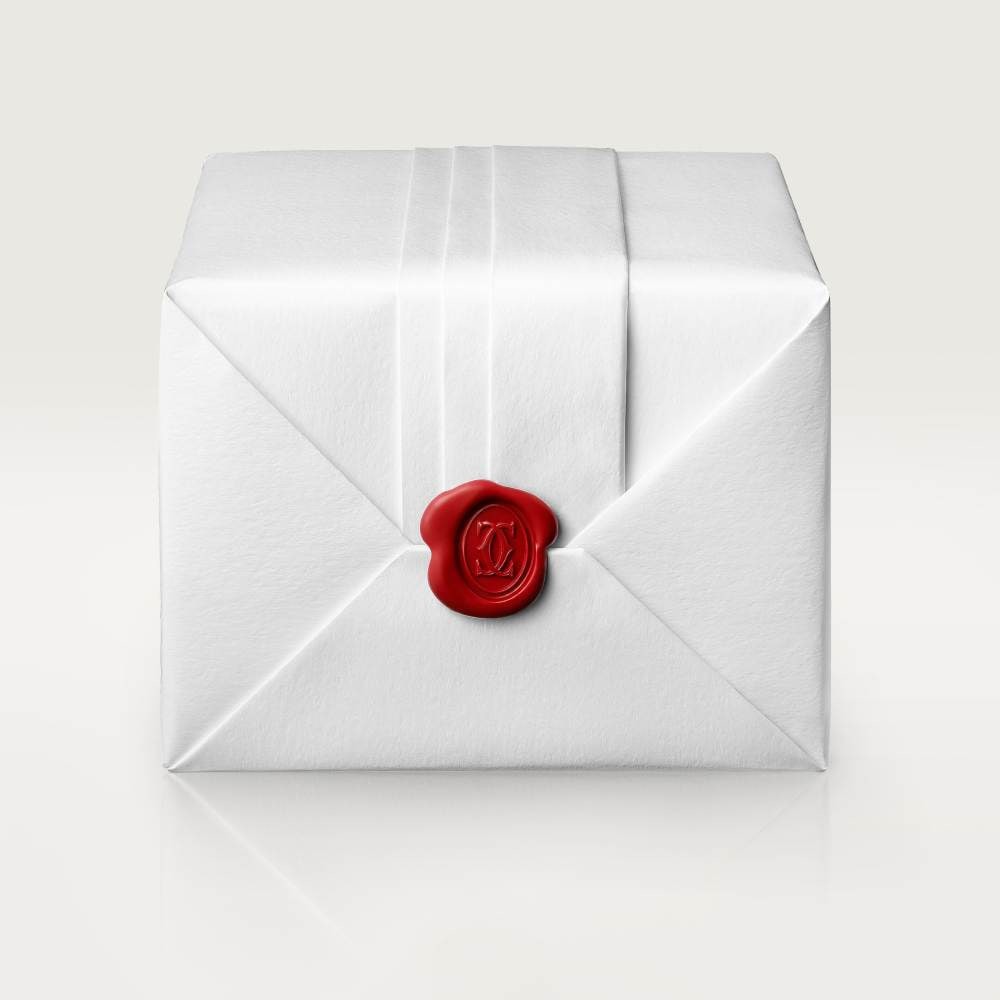 BAGNOIRE DE CARTIER, SMALL MODEL, QUARTZ MOVEMENT. 750/1000 rose gold case set with 42 brilliant-cut round diamonds, weighing a total of 0.48 carats. 750/1000 rose gold beaded crown set with 1 0.08 ct cabochon diamond. Silver-plated dial, sword-shaped blued steel hands, synthetic sapphire crystal finish. Red lacquered alligator leather strap with 750/1000 rose gold pin buckle. Length: 31.4 mm, width: 23.09 mm, thickness: 6.95 mm. Living waterproof depth 3 bar (about 30 meters)